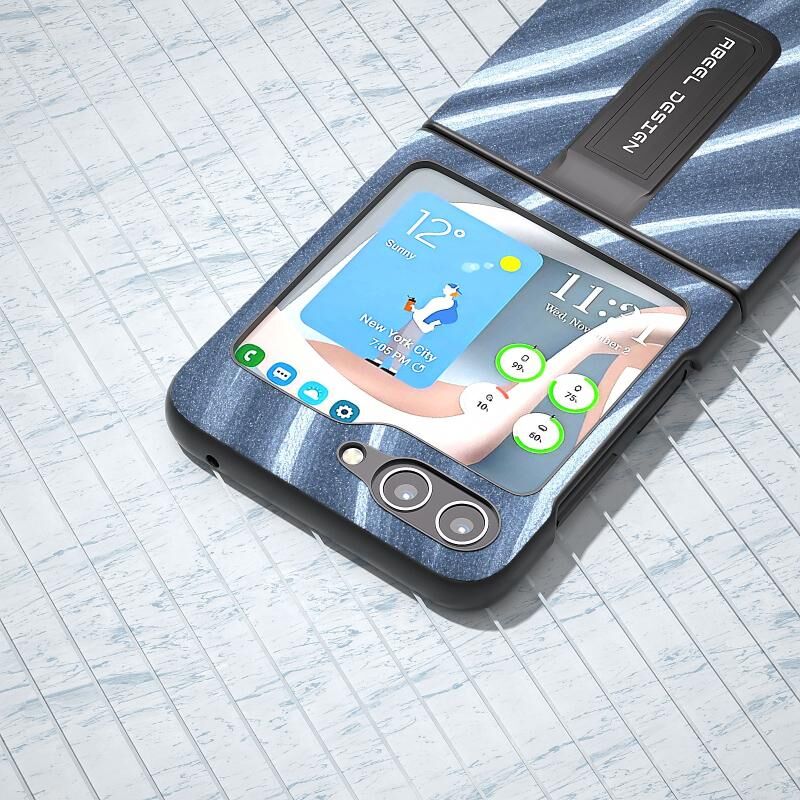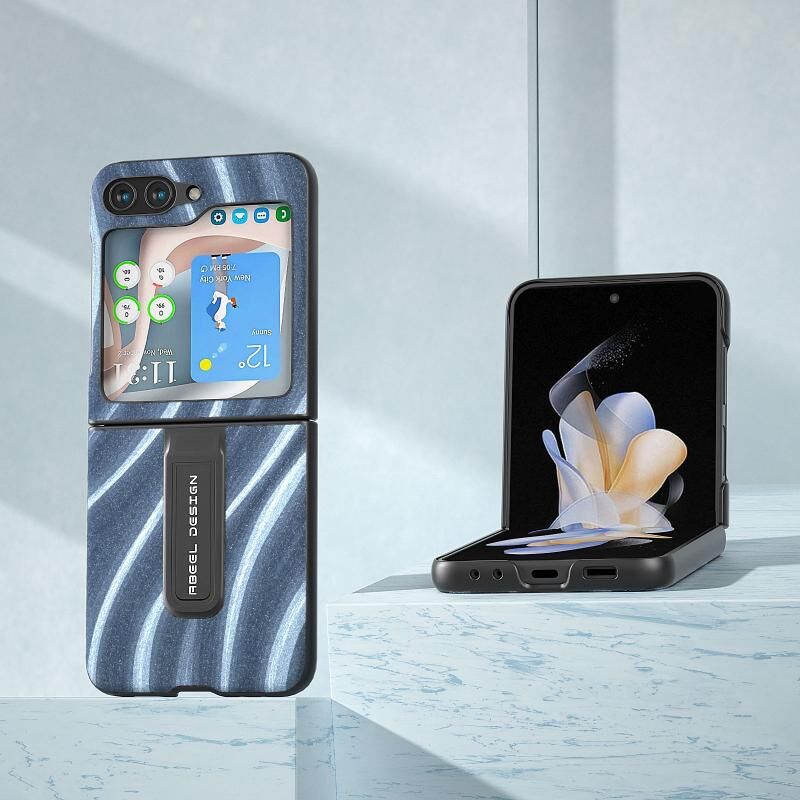 Θήκη προστασίας κινητού τηλεφώνου με βάση στήριξης για Samsung Galaxy Z Flip5 ABEEL, με γαλαξιακό μοτίβο (Μπλε)