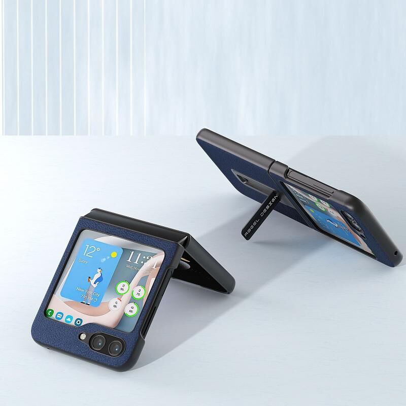 Θήκη τηλεφώνου Samsung Galaxy Z Flip5 ABEEL από γνήσιο δέρμα σειρά Luolai με βάση στήριξης (Σκούρο Μπλε)