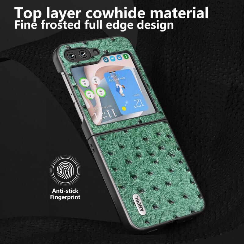 For Samsung Galaxy Z Flip5 ABEEL Genuine Leather Ostrich Texture Phone Case(Green)