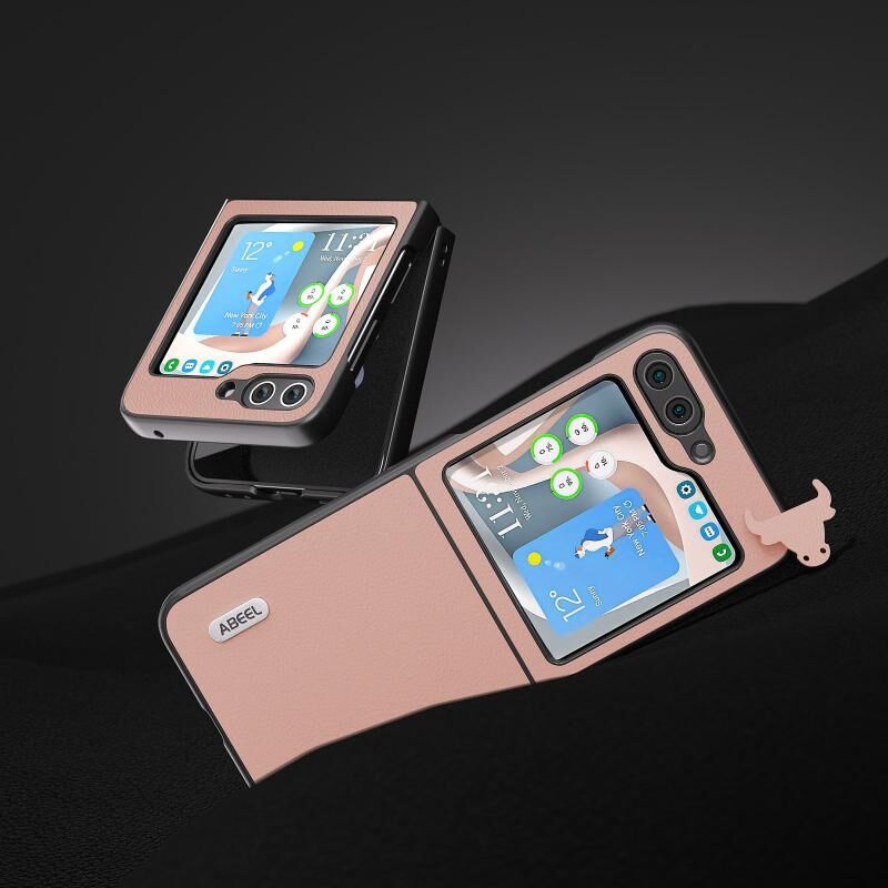 Θήκη τηλεφώνου Samsung Galaxy Z Flip5 ABEEL από γνήσιο δέρμα + PC με υφή λυτσί (Ροζ Χρυσός)