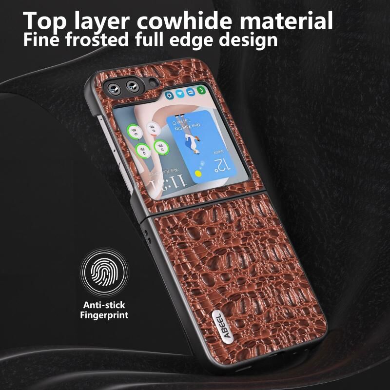 Θήκη τηλεφώνου Samsung Galaxy Z Flip5 ABEEL από γνήσιο δέρμα Sky Series Μαύρο περίγραμμα (Πράσινο)
