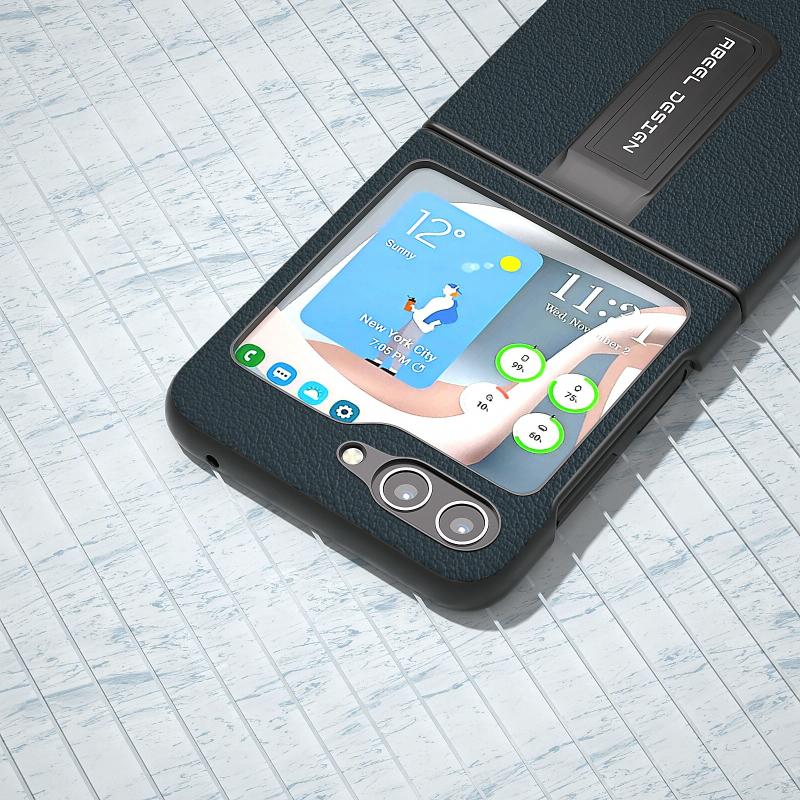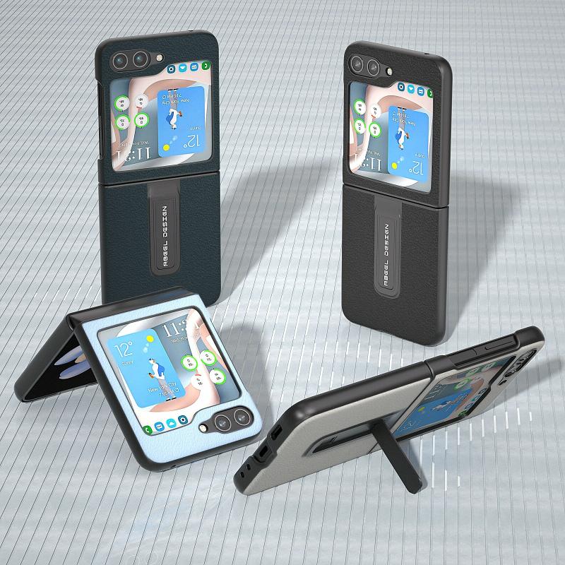 For Samsung Galaxy Z Flip5 ABEEL Genuine Leather Wave Black Edge Phone Case with Holder(Black)