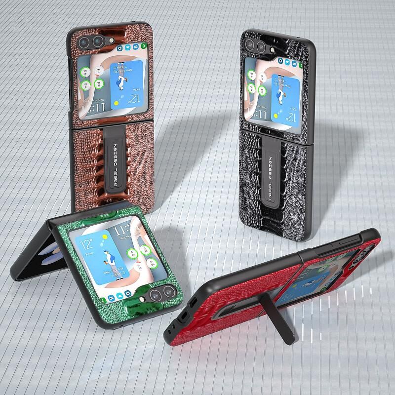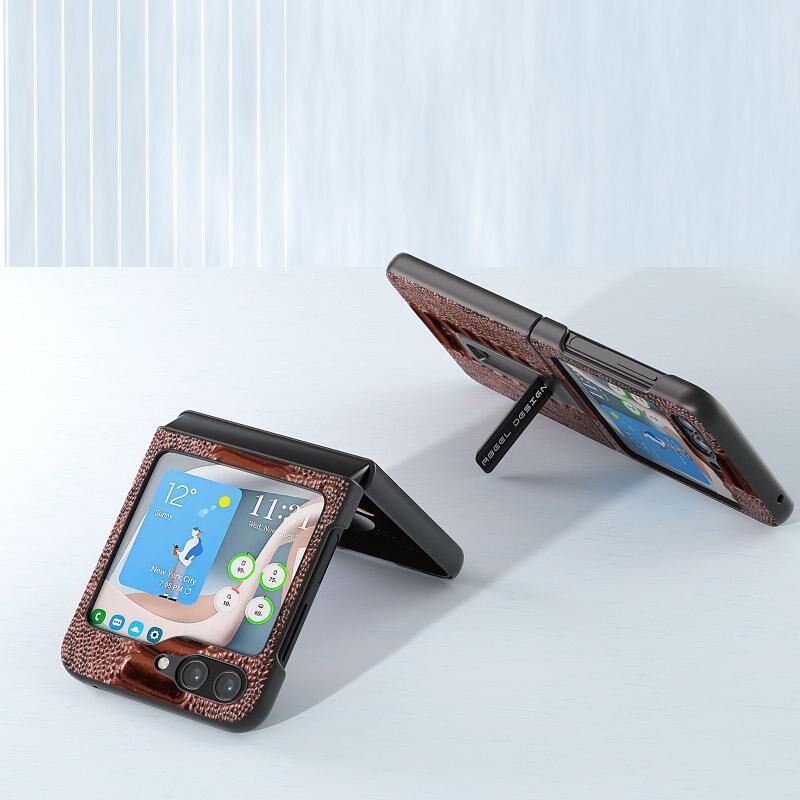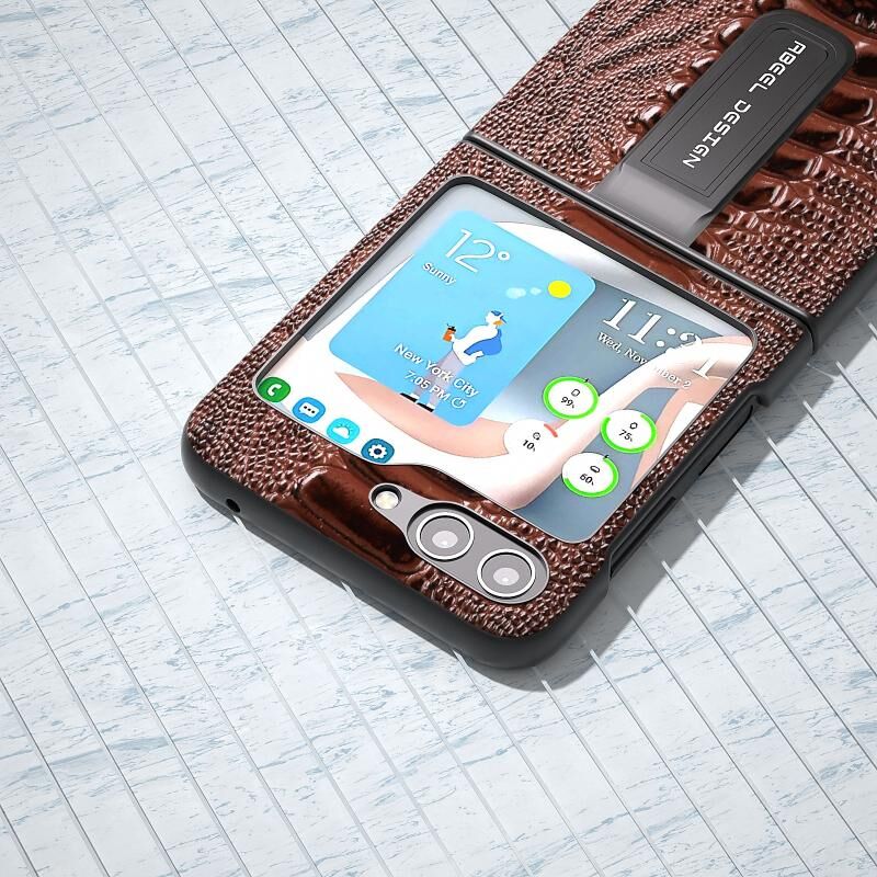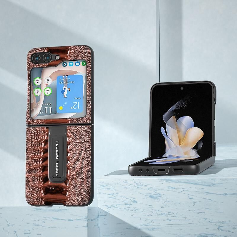 Θήκη τηλεφώνου Weilai Series από γνήσιο δέρμα ABEEL για Samsung Galaxy Z Flip5 με βάση στήριξης (Καφές)