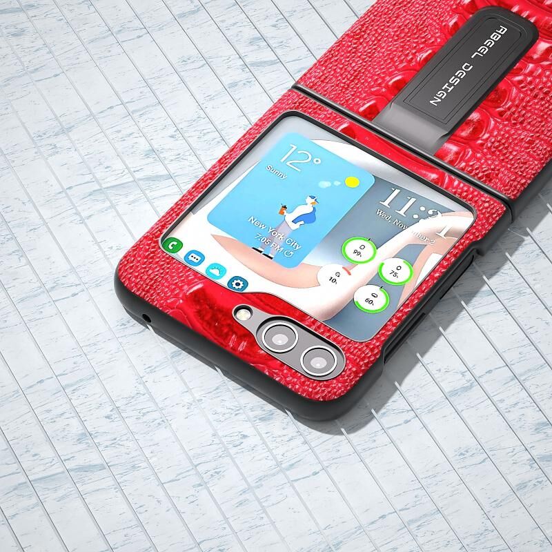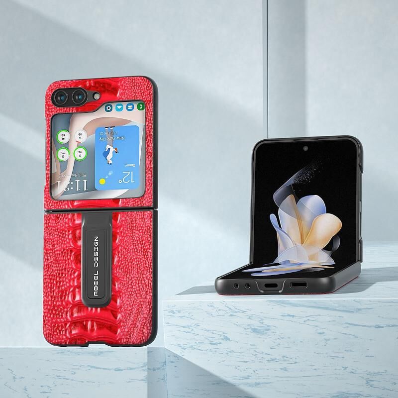 Θήκη τηλεφώνου Weilai Series από γνήσιο δέρμα ABEEL για Samsung Galaxy Z Flip5 με βάση στήριξης (Κόκκινο)