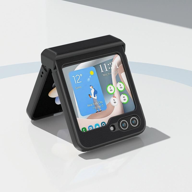 Θήκη τηλεφώνου PU με υφή Haze για Samsung Galaxy Z Flip5 (Μαύρο)
