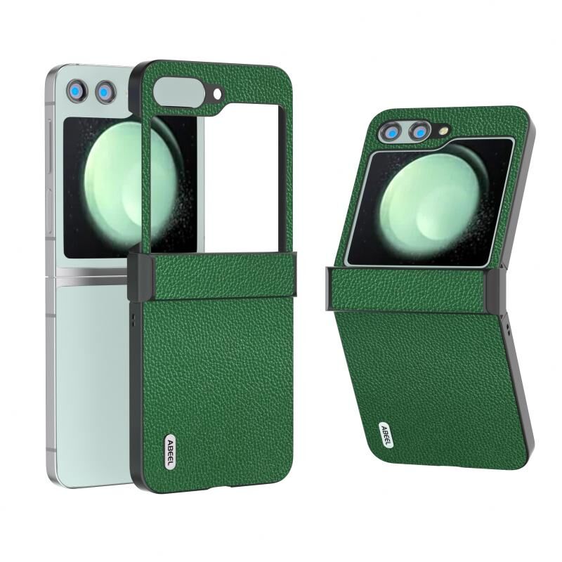 Θήκη τηλεφώνου Mino από γνήσιο δέρμα για Samsung Galaxy Z Flip5 ABEEL, με μαύρη άκρη (Πράσινο)