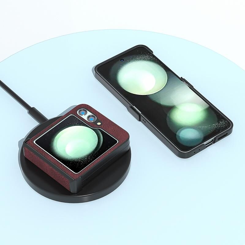Θήκη τηλεφώνου Samsung Galaxy Z Flip5 ABEEL με υφή δέρματος Litchi και άρθρωση Dream (Μωβ)