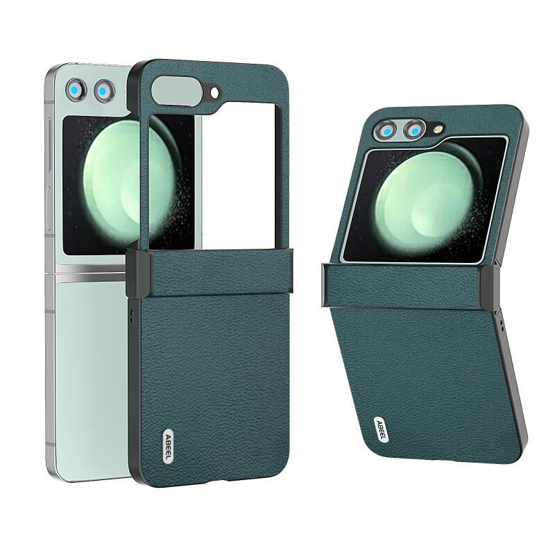 Θήκη τηλεφώνου Luolai Series από γνήσιο δέρμα για Samsung Galaxy Z Flip5 ABEEL Hinge (Σκούρο Πράσινο)