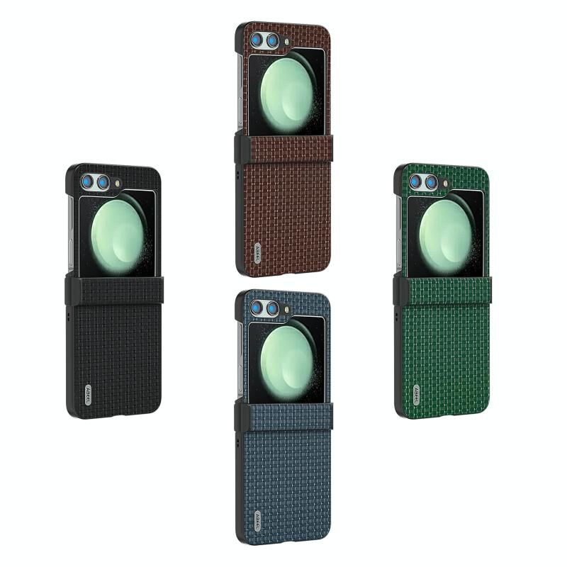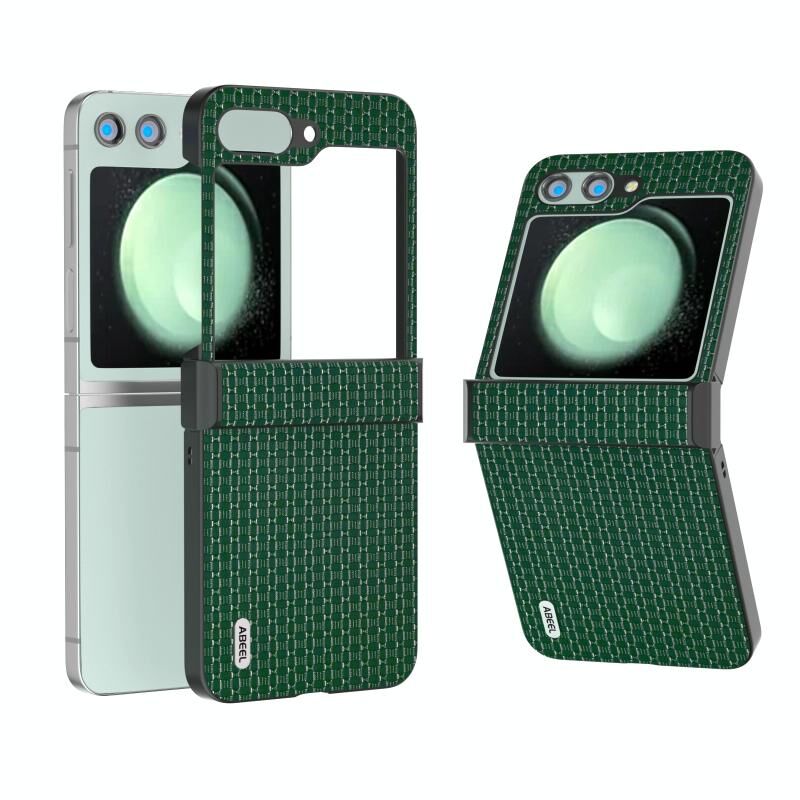 Θήκη τηλεφώνου Samsung Galaxy Z Flip5 ABEEL Hinge από γνήσιο δέρμα, πολυτελούς σειράς (Πράσινο της Νύχτας)