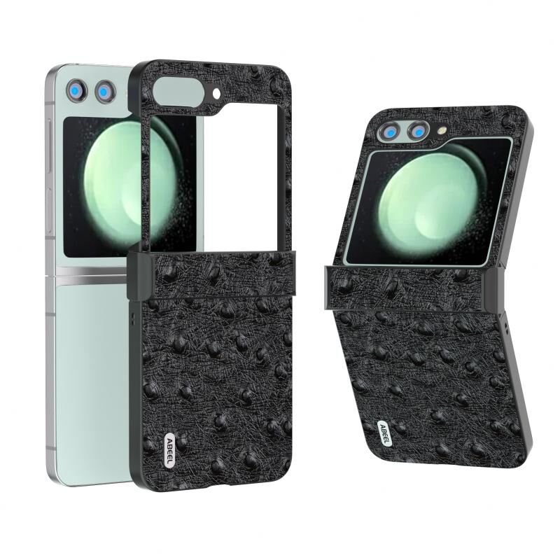 Θήκη τηλεφώνου Samsung Galaxy Z Flip5 ABEEL με γνήσιο δέρμα στρουθοκάμπου (Μαύρο)