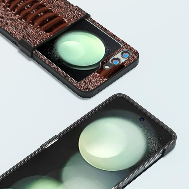 Θήκη τηλεφώνου Weilai Series από γνήσιο δέρμα για Samsung Galaxy Z Flip5 ABEEL Hinge (Καφέ)