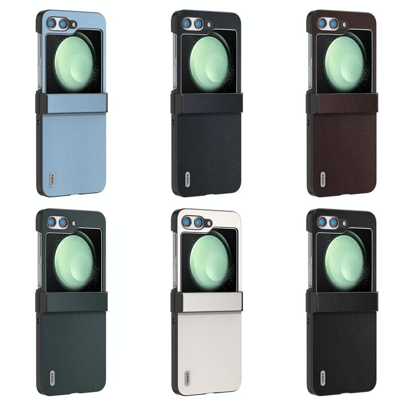 Θήκη τηλεφώνου Samsung Galaxy Z Flip5 ABEEL από γνήσιο δέρμα, κομψή μαύρη με λευκή επένδυση (Τριών σταδίων)
