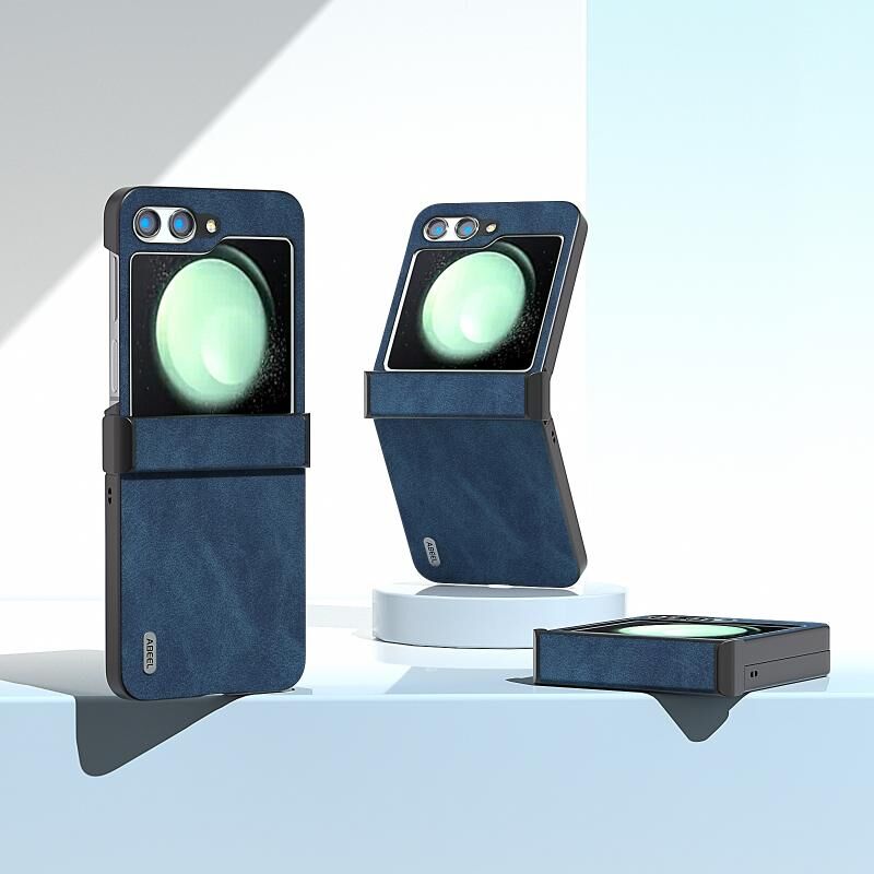 Θήκη τηλεφώνου για Samsung Galaxy Z Flip5 ABEEL, τριών στρώσεων από δέρμα PU, μαύρο περίγραμμα (Μαύρο)