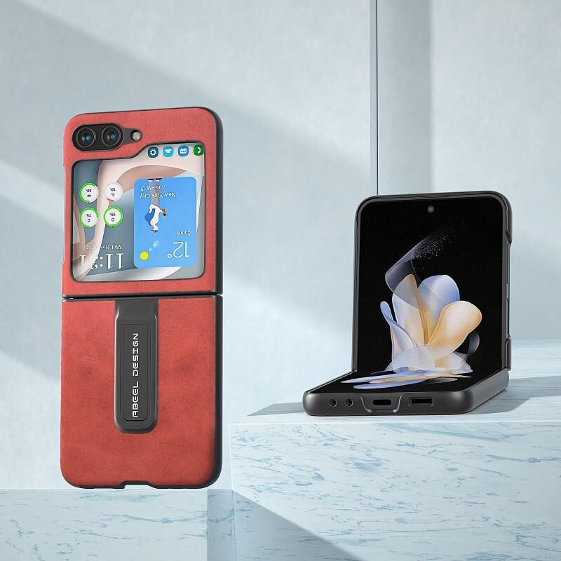 Θήκη τηλεφώνου για Samsung Galaxy Z Flip5 ABEEL, Δερμάτινη υφή δύο χρωμάτων PU με βάση (Κόκκινο)