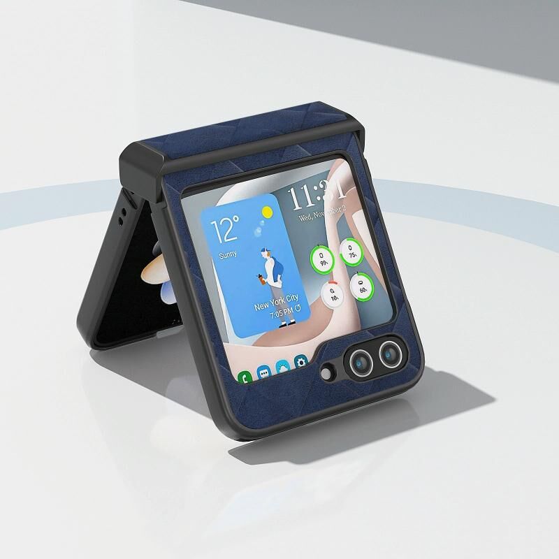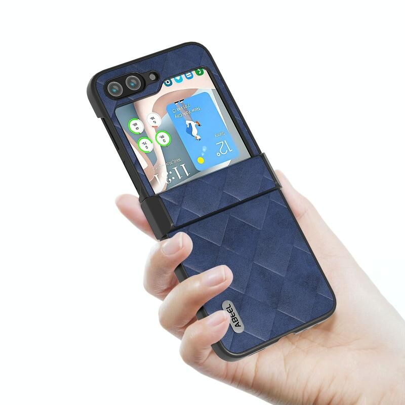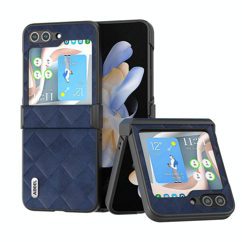 Για Samsung Galaxy Z Flip5 ABEEL Θήκη PU με ύφανση καρό (Μπλε)