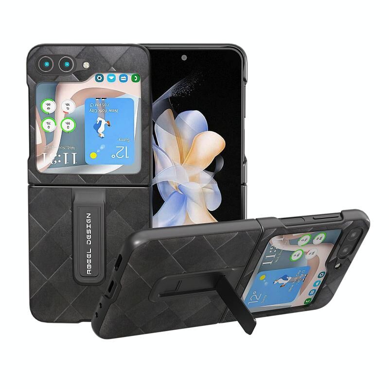 Θήκη τηλεφώνου Samsung Galaxy Z Flip5 ABEEL Weave Plaid PU με Στήριξη (Μαύρο)