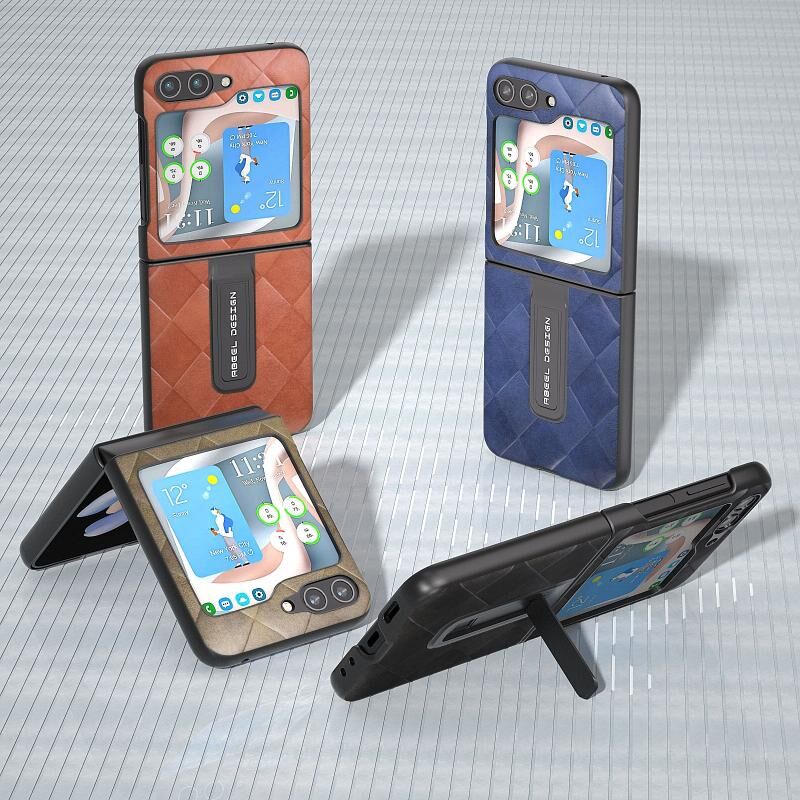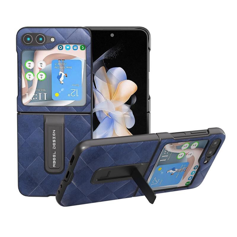 Θήκη τηλεφώνου Samsung Galaxy Z Flip5 ABEEL Weave Plaid PU με Στήριξη (Μπλε)