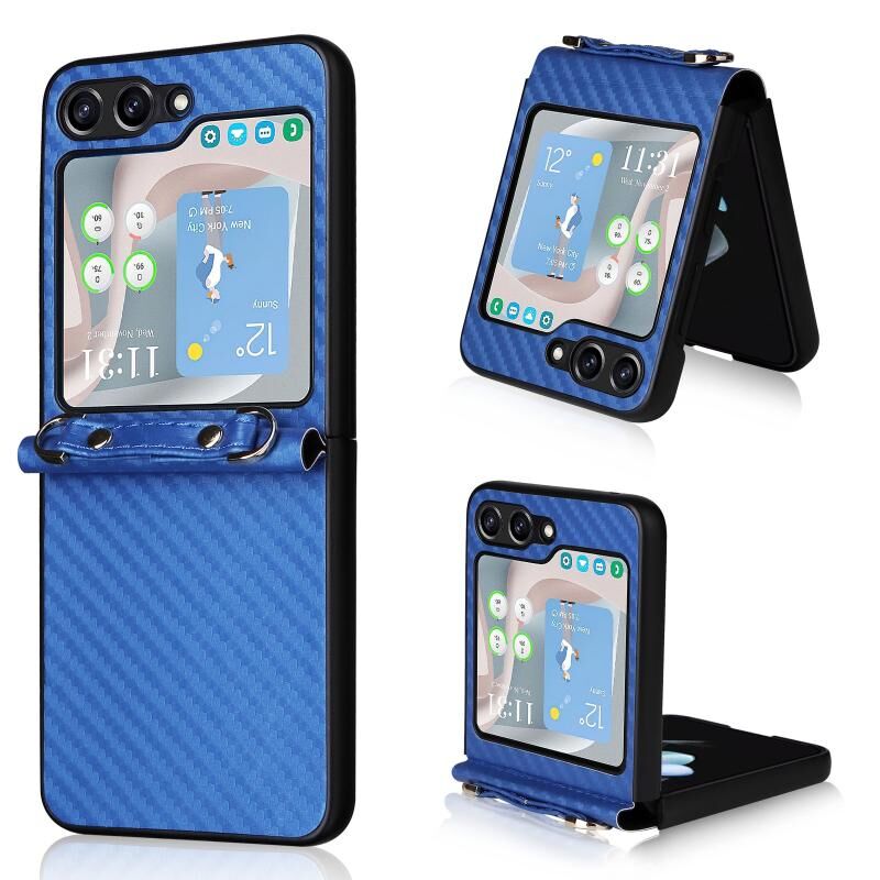 For Samsung Galaxy Z Flip5 Carbon Fiber Texture Phone Case with Lanyard(Blue)