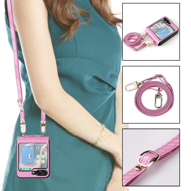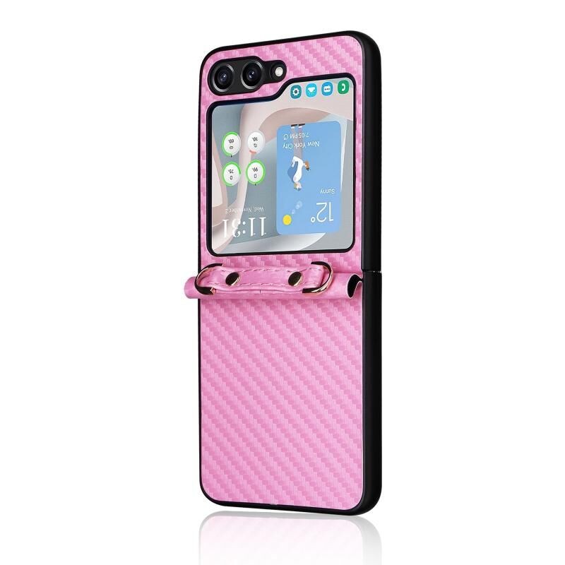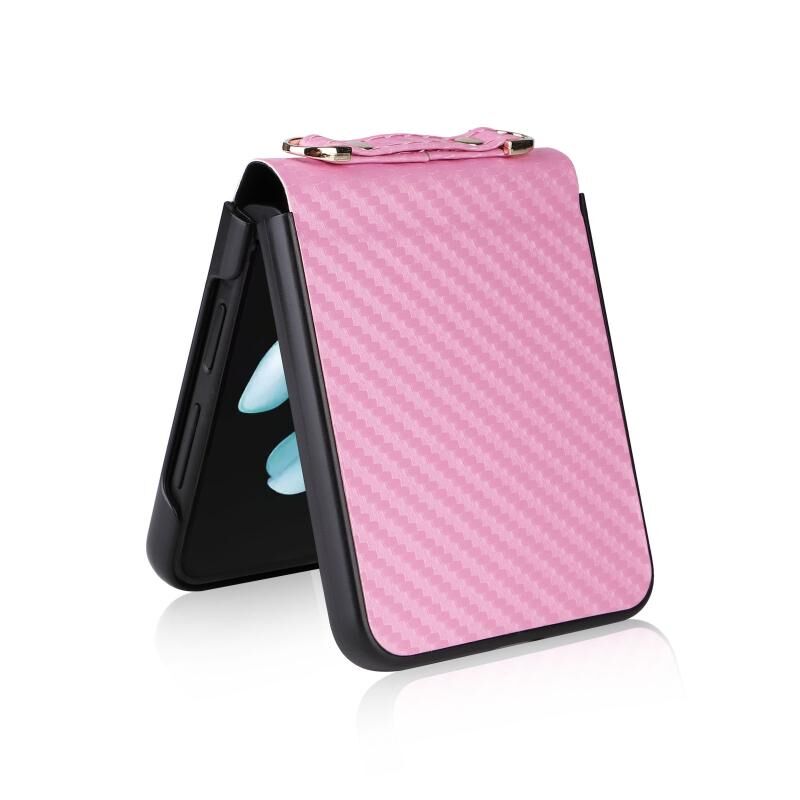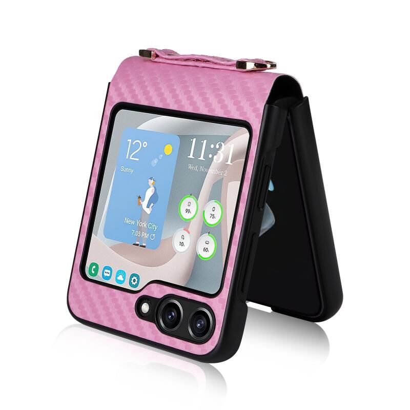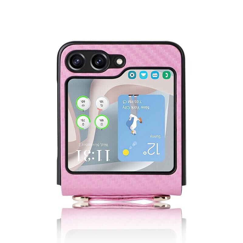 For Samsung Galaxy Z Flip5 Carbon Fiber Texture Phone Case with Lanyard(Pink)