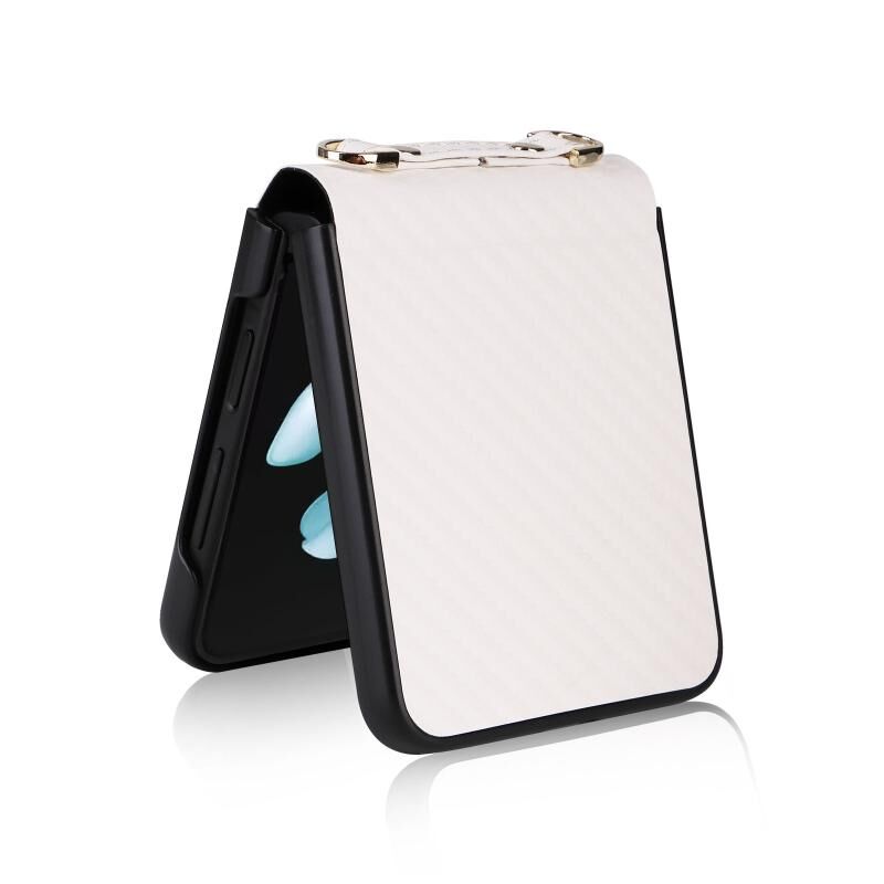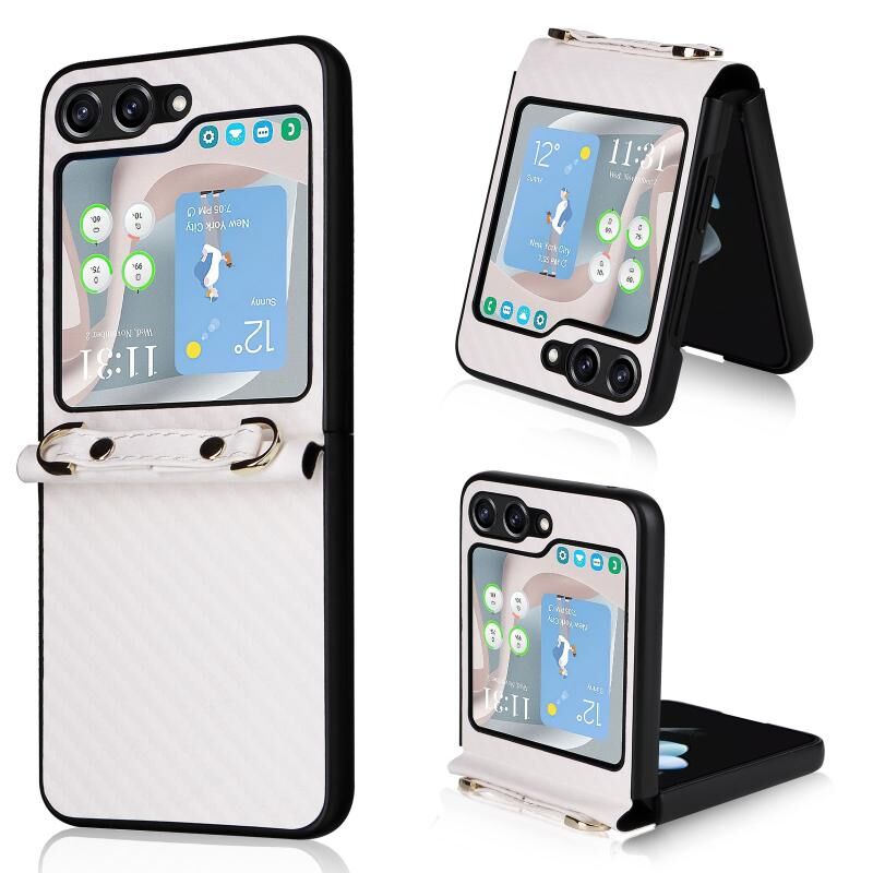 For Samsung Galaxy Z Flip5 Carbon Fiber Texture Phone Case with Lanyard(White)