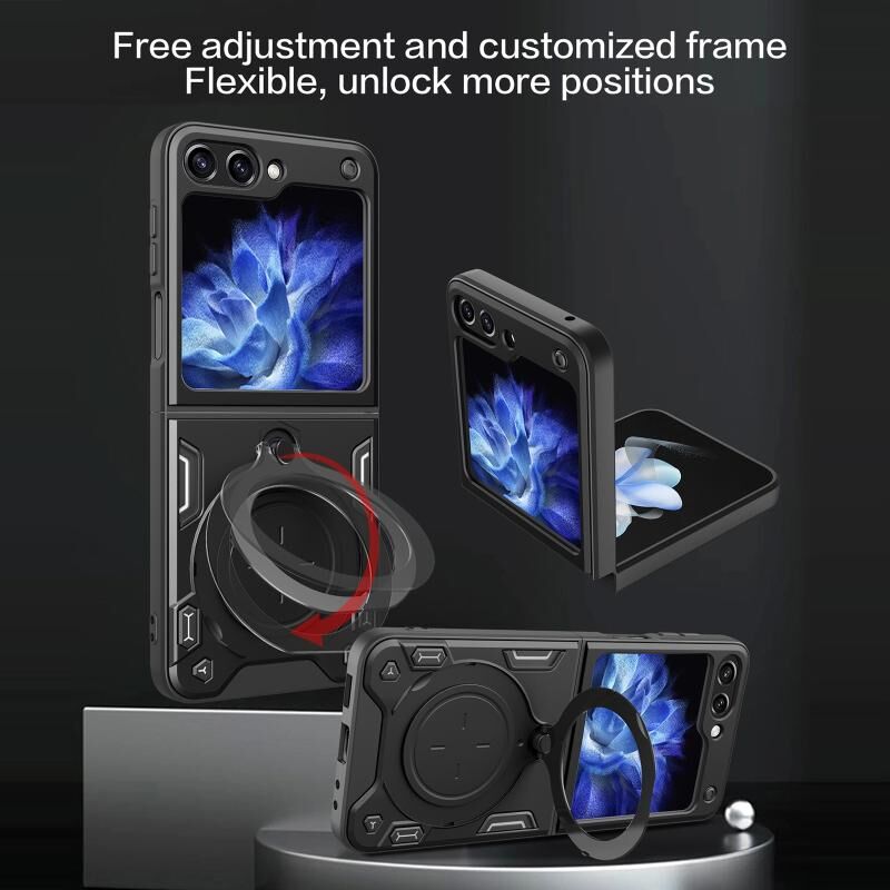 For Samsung Galaxy Z Flip5 CD Texture Magnetic Holder Phone Case(Silver)