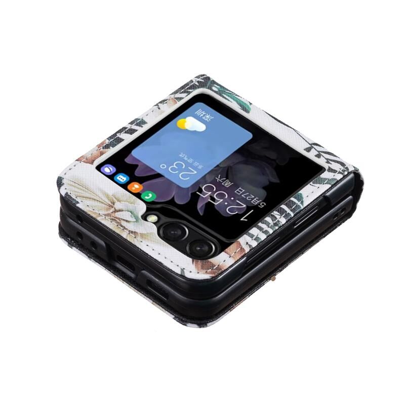 For Samsung Galaxy Z Flip5 Colored Drawing Pattern PU + PC Shockproof Phone Case(Red Leaves)