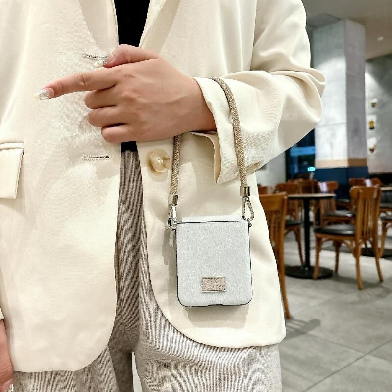 Για Samsung Galaxy Z Flip5 Άνετη σύντομη βελούδινη θήκη τηλεφώνου πλήρους κάλυψης με λουράκι καρπού (λευκό)