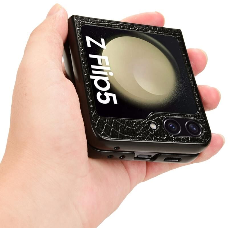 Θήκη κινητού τηλεφώνου με ανάγλυφη υφή κροκόδειλου για Samsung Galaxy Z Flip5 (Ροζ)
