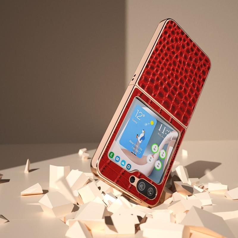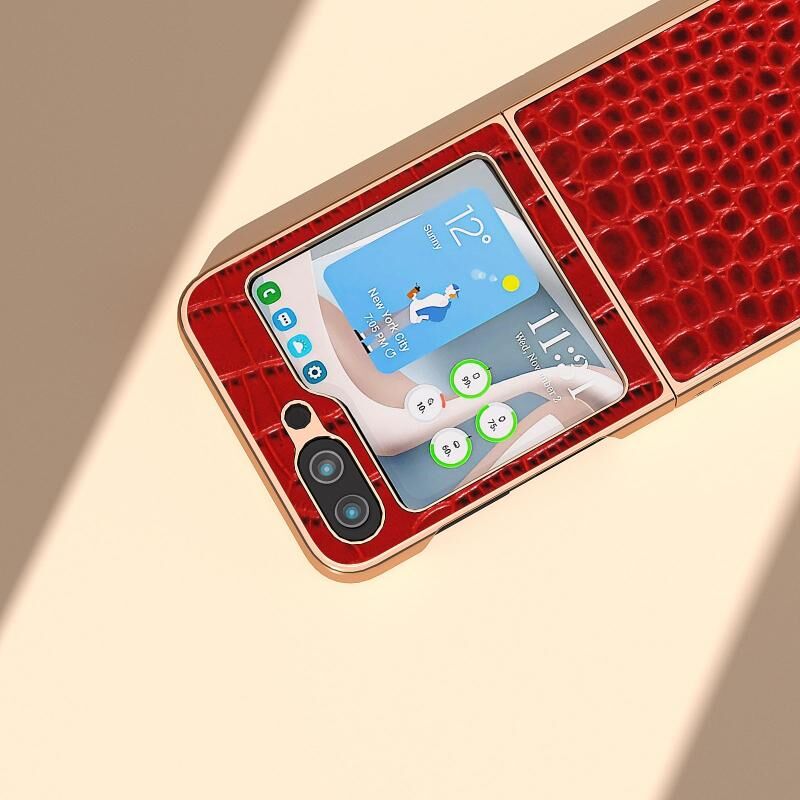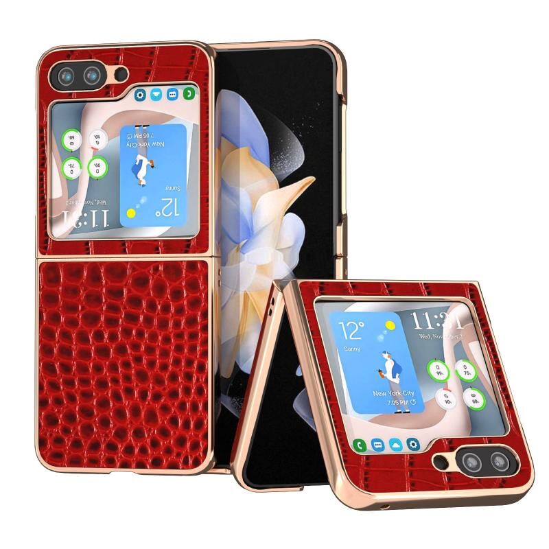 Θήκη τηλεφώνου Samsung Galaxy Z Flip5 με γνήσιο δέρμα υφής κροκόδειλου και νανο-επίχρυση (Κόκκινο)