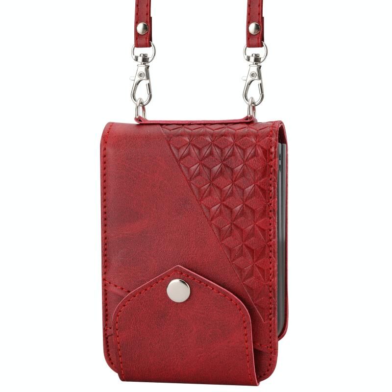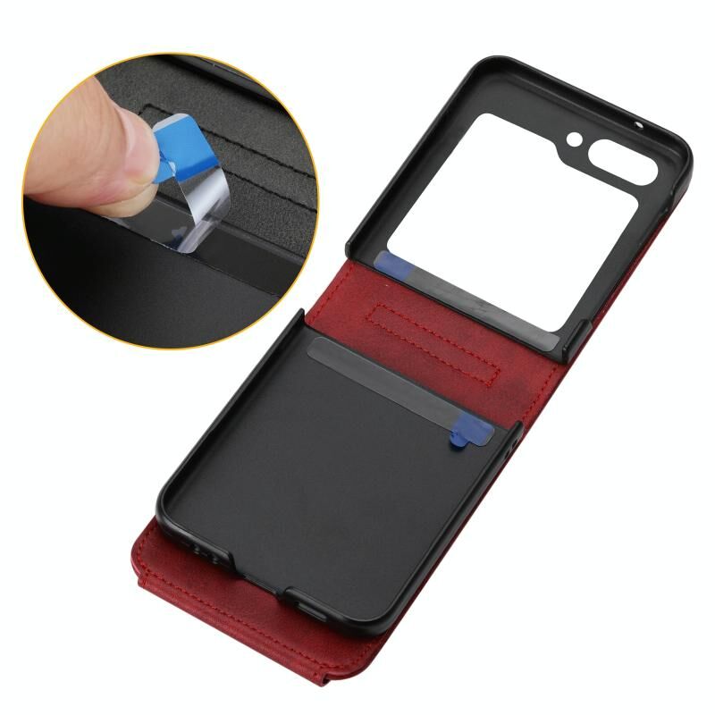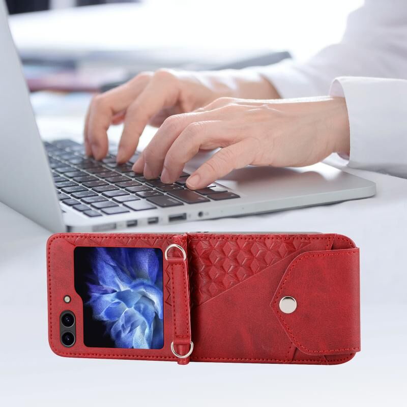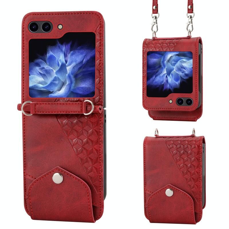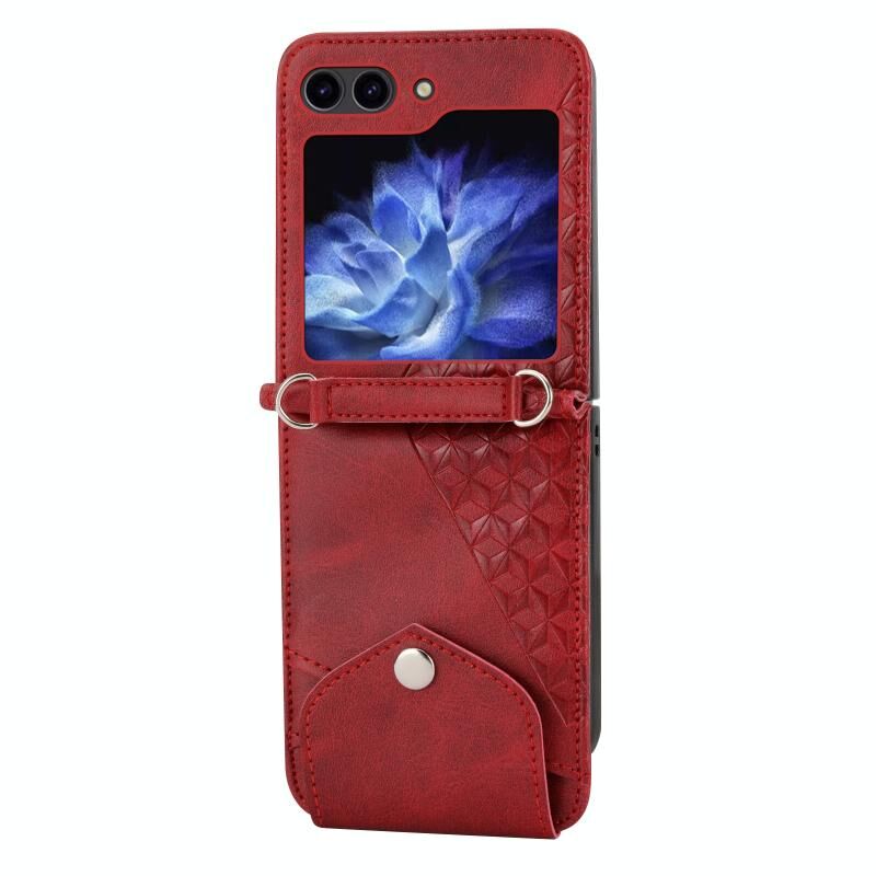 Για Samsung Galaxy Z Flip5 Cubic Grid Calf υφή μαγνητική δερμάτινη θήκη τηλεφώνου (κόκκινο)