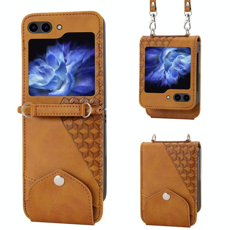 Για Samsung Galaxy Z Flip5 Cubic Grid Calf υφή μαγνητική δερμάτινη θήκη τηλεφώνου (κίτρινο)