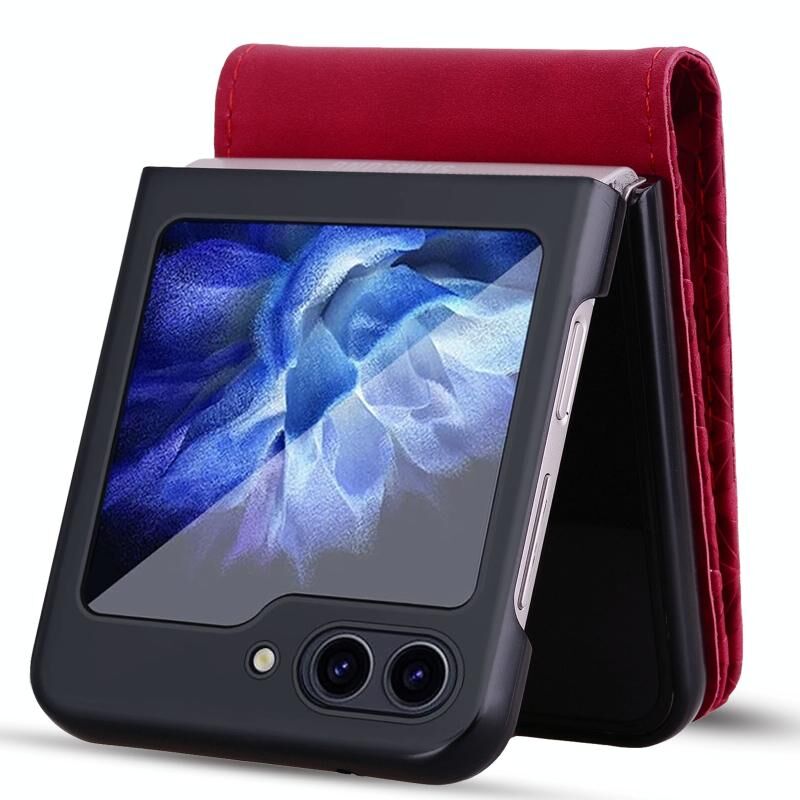 Για Samsung Galaxy Z Flip5 Diamond Πόρπη δερμάτινη θήκη τηλεφώνου με κορδόνι (κόκκινο κρασί)
