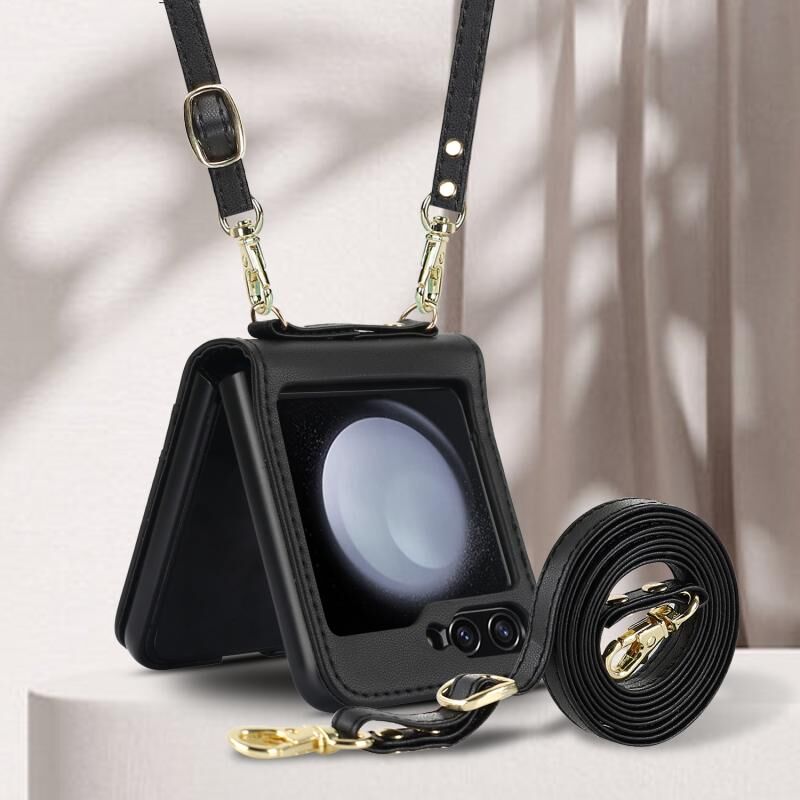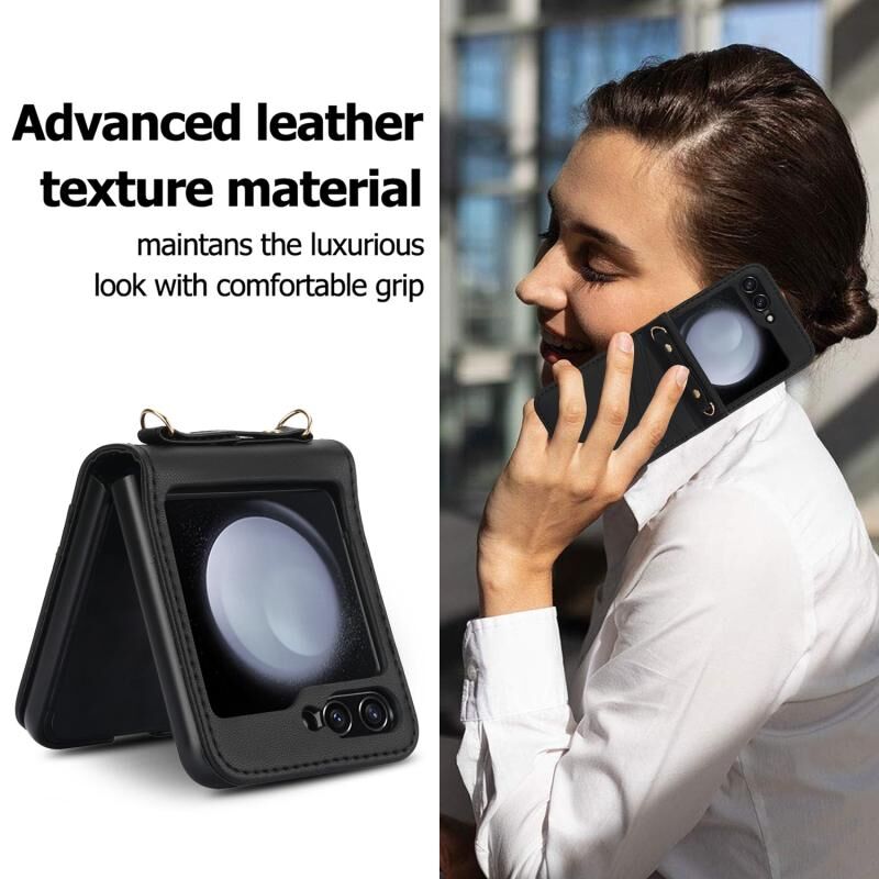 Για το Samsung Galaxy Z Flip5 Dual Card Slots Πτυσσόμενη θήκη τηλεφώνου (Μαύρο)