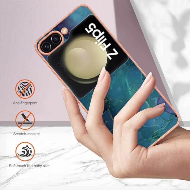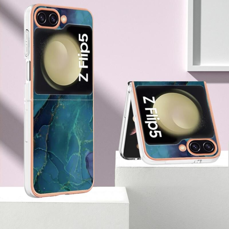 Θήκη τηλεφώνου για Samsung Galaxy Z Flip5, Γαλβανισμένο Μάρμαρο, Διπλής Όψης IMD (Χρυσό Ρόδι 005)