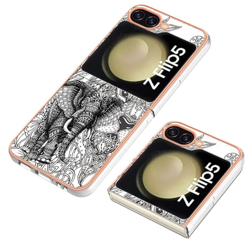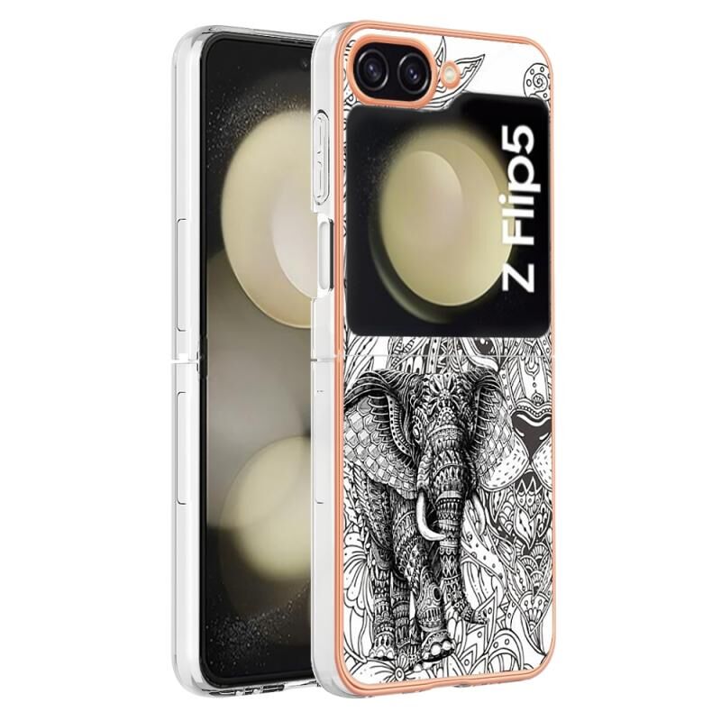 Θήκη τηλεφώνου για Samsung Galaxy Z Flip5 με ηλεκτρολυτική μαρμάρινη όψη IMD διπλής όψης (Totem Elephant)