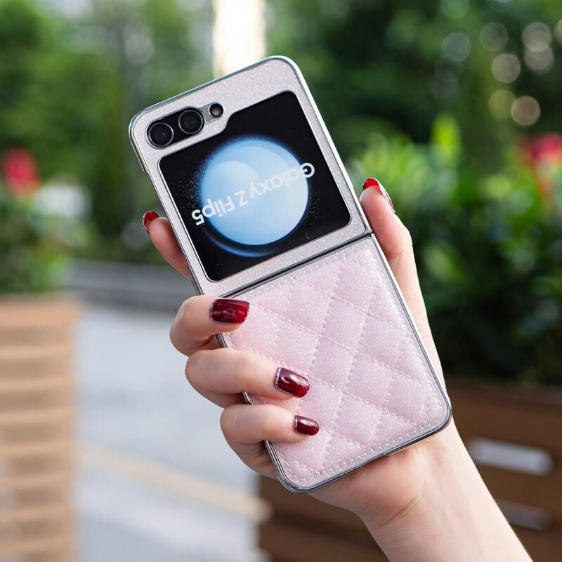 Για Samsung Galaxy Z Flip5 Ηλεκτρολυτική επιμετάλλωση ρομβοειδής Glitter PU υπόθεση τηλεφώνου (ροζ)