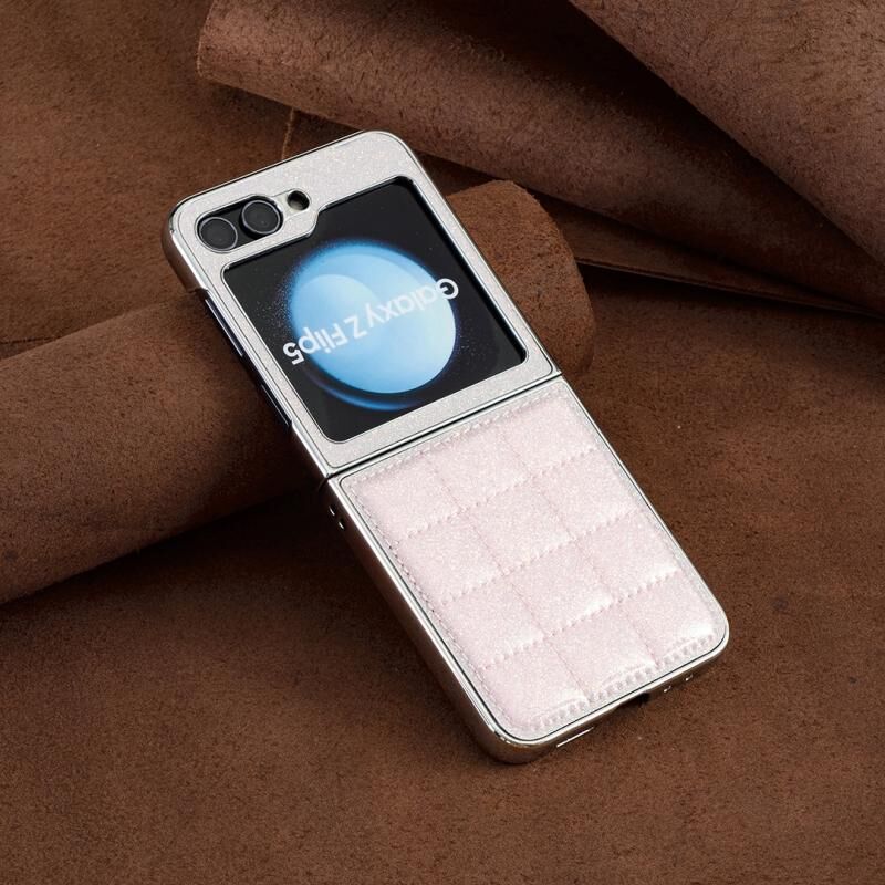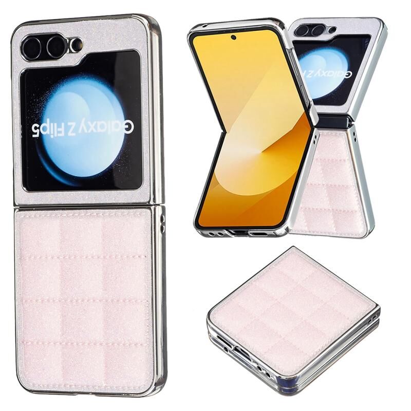 Για Samsung Galaxy Z Flip5 Electroplating τετράγωνο Glitter PU υπόθεση τηλεφώνου (ροζ)