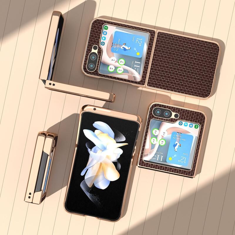 Θήκη τηλεφώνου Samsung Galaxy Z Flip5 από γνήσιο δέρμα, πολυτελούς σειράς, με νανοεπίστρωση (Καφές)