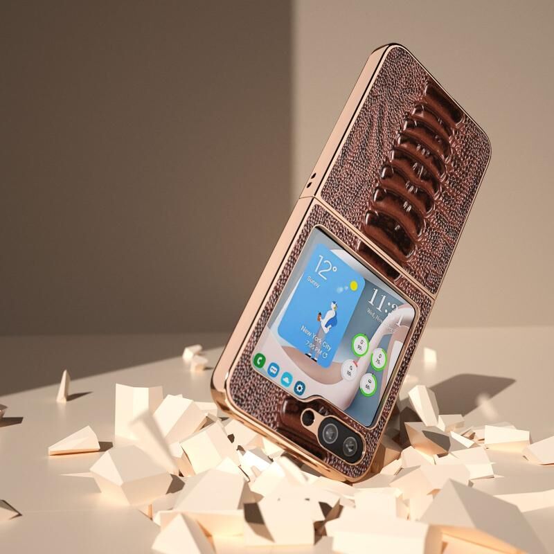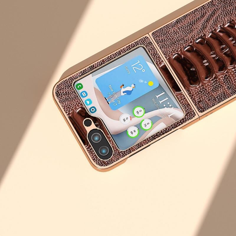 Θήκη τηλεφώνου Samsung Galaxy Z Flip5 από γνήσιο δέρμα σειρά Weilai με νανοεπίχρυση (Καφές)