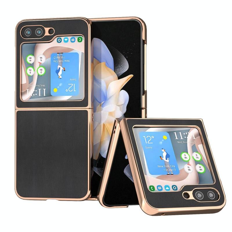 Θήκη τηλεφώνου Samsung Galaxy Z Flip5 από γνήσιο δέρμα Xiaoya Series με νανοεπίστρωση (Μαύρο)