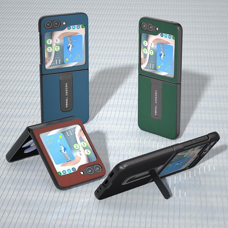 Θήκη τηλεφώνου με βάση στήριξης για Samsung Galaxy Z Flip5, γνήσια, βελούδινη, απαλή, ABEEL, μαύρη (Μαύρο)