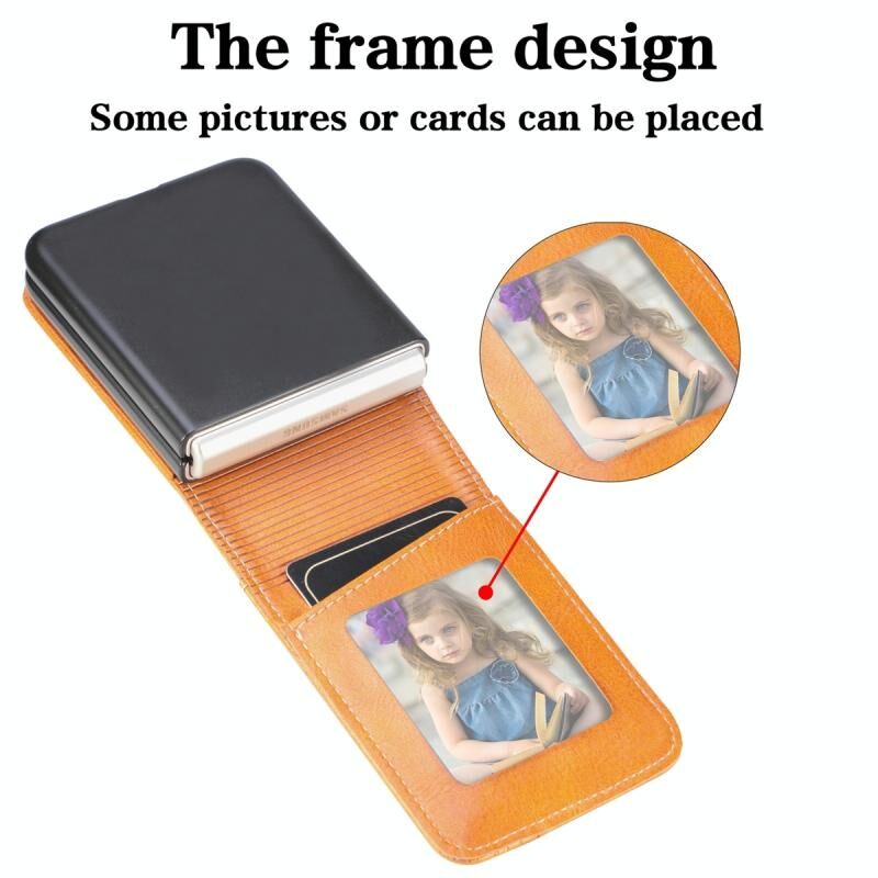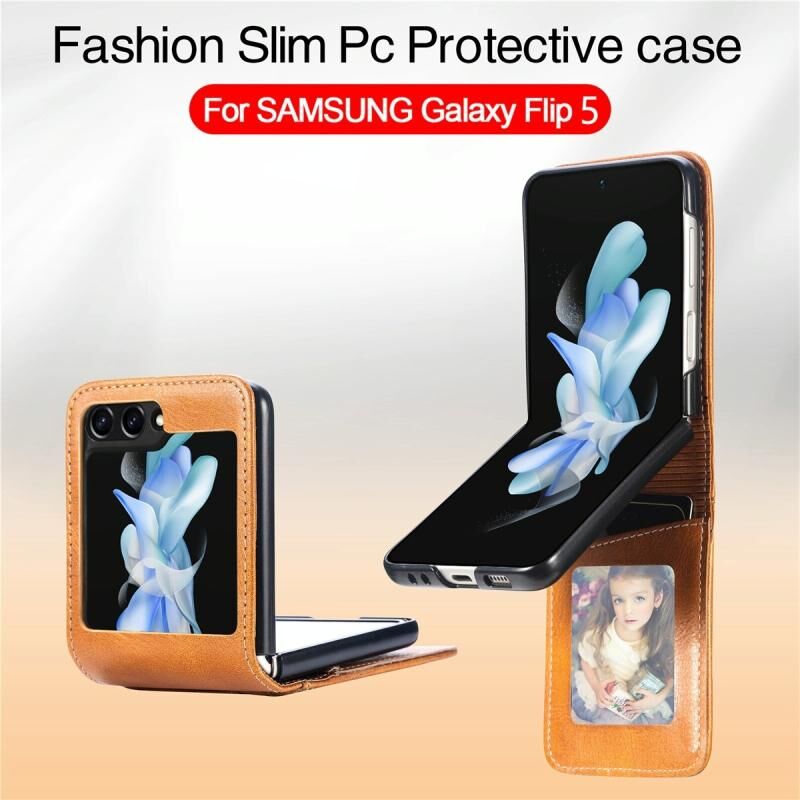 Θήκη τηλεφώνου για Samsung Galaxy Z Flip5 JUNSUNMAY από δέρμα PU με πτυσσόμενο σχεδιασμό και θήκες για κάρτες (Καφέ) (JUNSUNMAY)