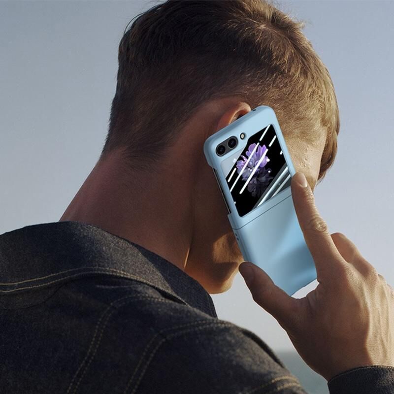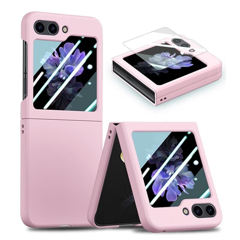 Για Samsung Galaxy Z Flip5 JUNSUNMAY Λεπτή θήκη PC + προστατευτικό οθόνης από σκληρυμένο γυαλί 9H για αναδιπλούμενο τηλέφωνο (Μωβ) (JUNSUNMAY)