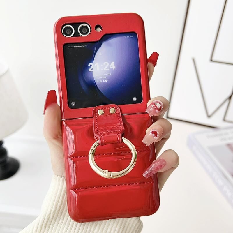 Για το Samsung Galaxy Z flip5 Laser Aurora δαχτυλίδι δαχτυλίδι κάτω σακάκι Shockproof τηλέφωνο υπόθεση (κόκκινο)