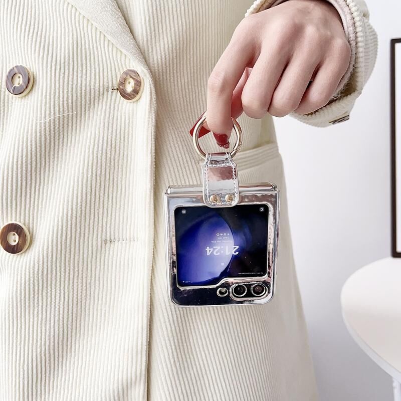 Για το Samsung Galaxy Z flip5 Laser Aurora δαχτυλίδι δαχτυλίδι κάτω σακάκι Shockproof τηλέφωνο υπόθεση (Rose Gold)