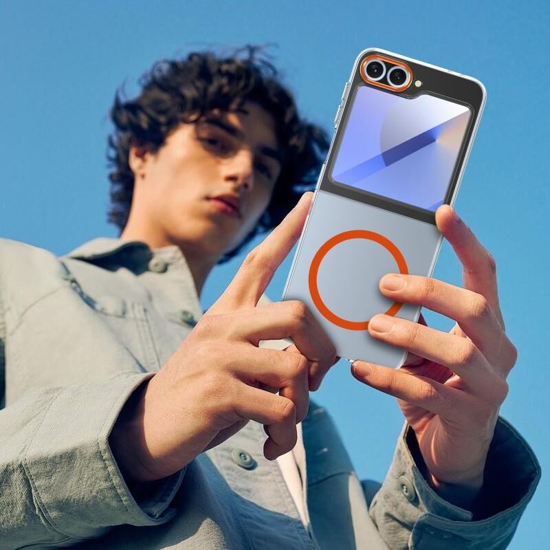 Θήκη τηλεφώνου από διαφανές PC με ενσωματωμένο MagSafe για Samsung Galaxy Z Flip5 Ice Folding Series (Orange)