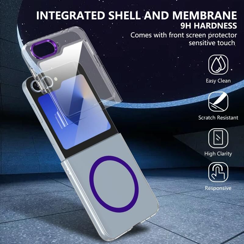 Θήκη τηλεφώνου από διαφανές PC για Samsung Galaxy Z Flip5 Ice Folding Series με ενσωματωμένο MagSafe (Μαύρο)