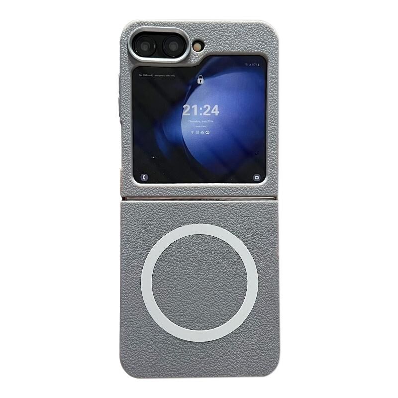 Θήκη τηλεφώνου Samsung Galaxy Z Flip5 με δερμάτινη υφή, σχεδιασμό MagSafe και πλήρη κάλυψη (Λευκό)