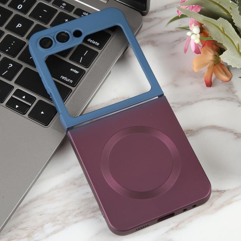 Θήκη τηλεφώνου Samsung Galaxy Z Flip5 Υγρή σιλικόνη TPU με διαβάθμιση χρώματος και MagSafe (Ροζ Κόκκινο)