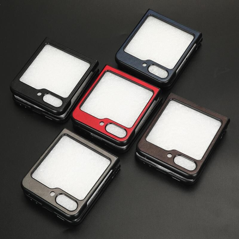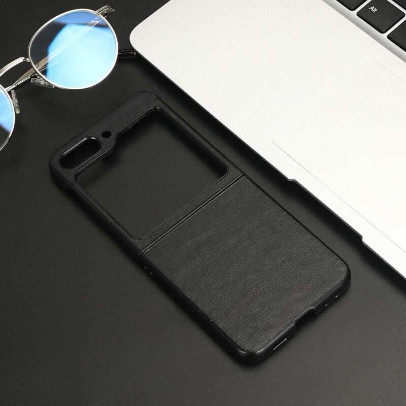 Θήκη κινητού Samsung Galaxy Z Flip5 με υφή δέρματος λitchi (Μαύρο)